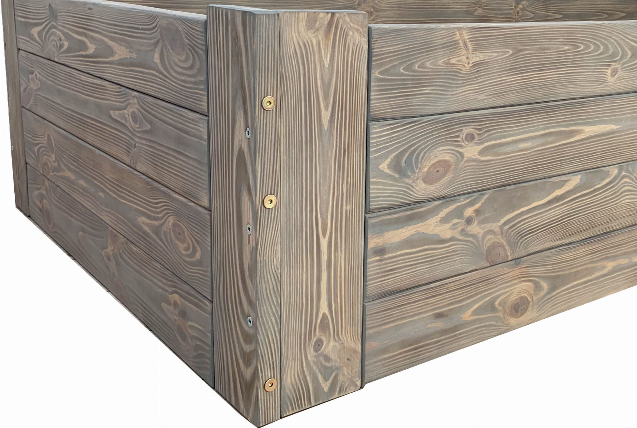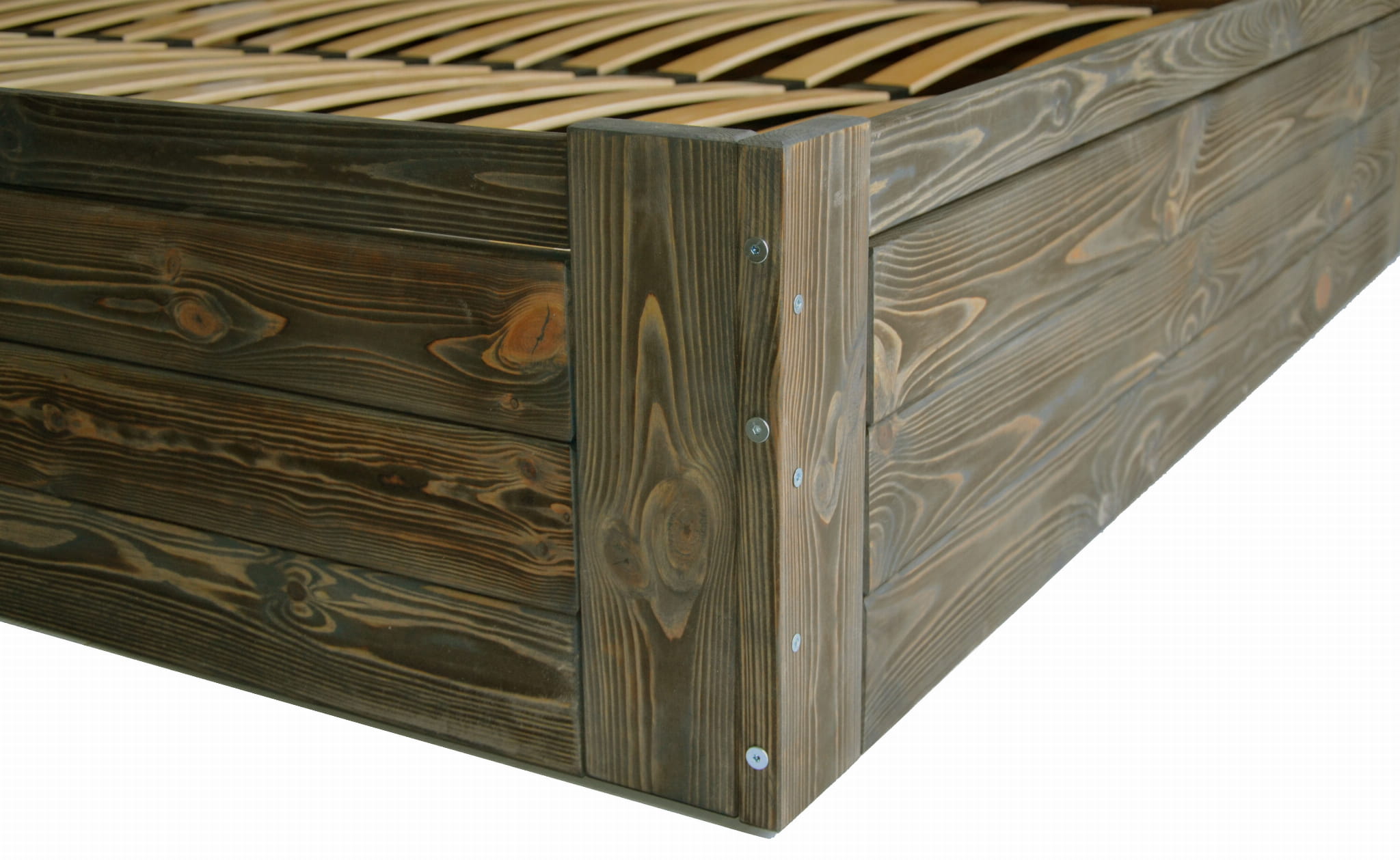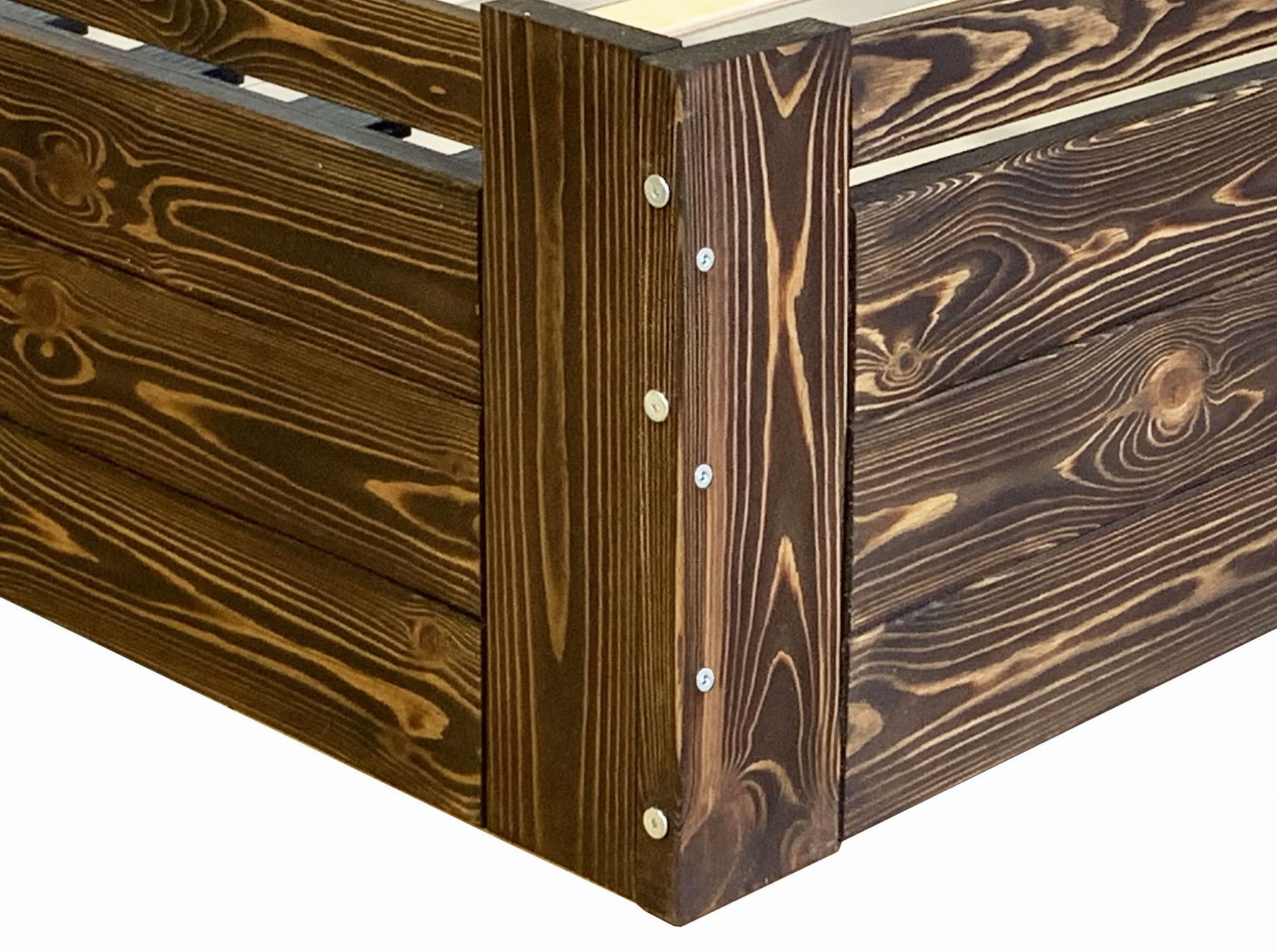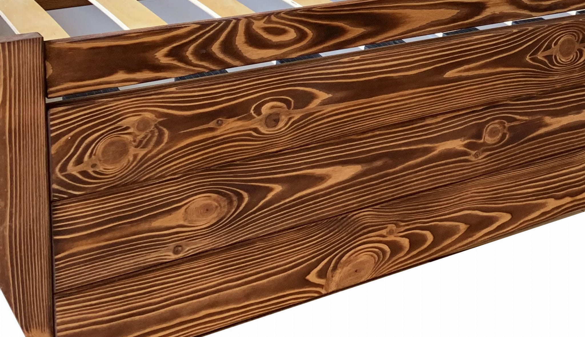 W łóżku zastosowaliśmy ponadczasową tradycyjną Japońską metodę impregnacji drewna ogniem — Shou Sugi Ban znaną już od ponad 700 lat, która obecnie przeżywa swój renesans.
